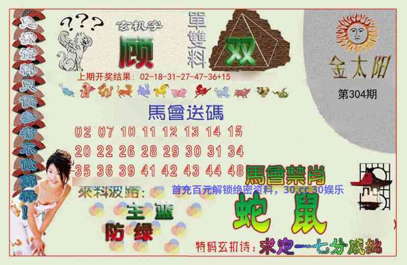 | 305期:三头中特【1头3头4头】开:鼠42准 |